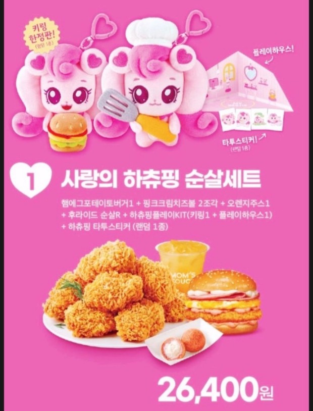 맘스터치는 이번 콜라보를 통해 세 가지 특별 메뉴를 선보였습니다: 사랑의 하츄핑 세트, 사랑의 하츄핑 순살 세트, 그리고 사랑의 하츄핑 패밀리 세트입니다. 각 세트는 다양한 메뉴 조합과 함께 하츄핑 관련 굿즈를 제공하여 캐릭터 팬들의 마음을 사로잡고 있습니다.
